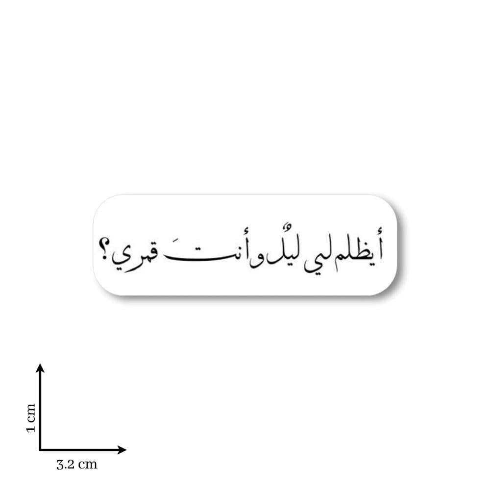 عبارة شاعرية تنثر دفء القرب والونس، ستيكر "أيَظلِمُ لي ليلٌ وأنتَ قُربي" مثالي لكل قلب يلاقي راحته بقُرب اللي يحب.سهل الالتصاق والإزالة: مناسب لل...