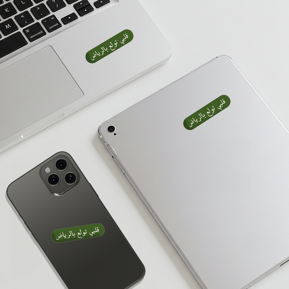 من نسمتها لصخبها، من شوارعها لهدوئها الرياض تسكن القلب، ستيكر "قلبي مولّع فيها" يقولها بصوت واضح.سهل الالتصاق والإزالة: مناسب للابتوب، الموبايل، ...